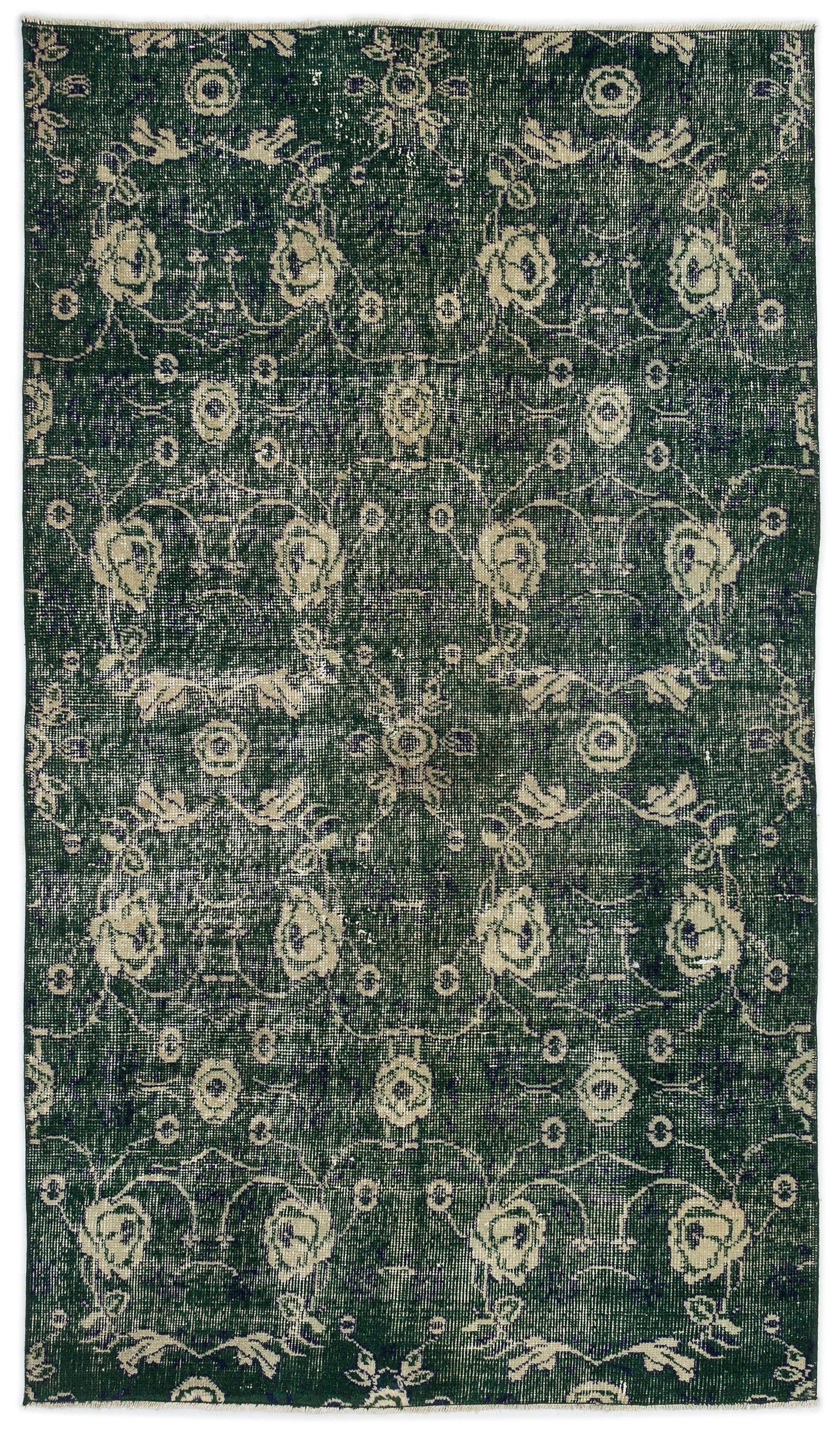 Atina Yeşil Eskitme Yün El Dokuma Halısı 113 x 201
