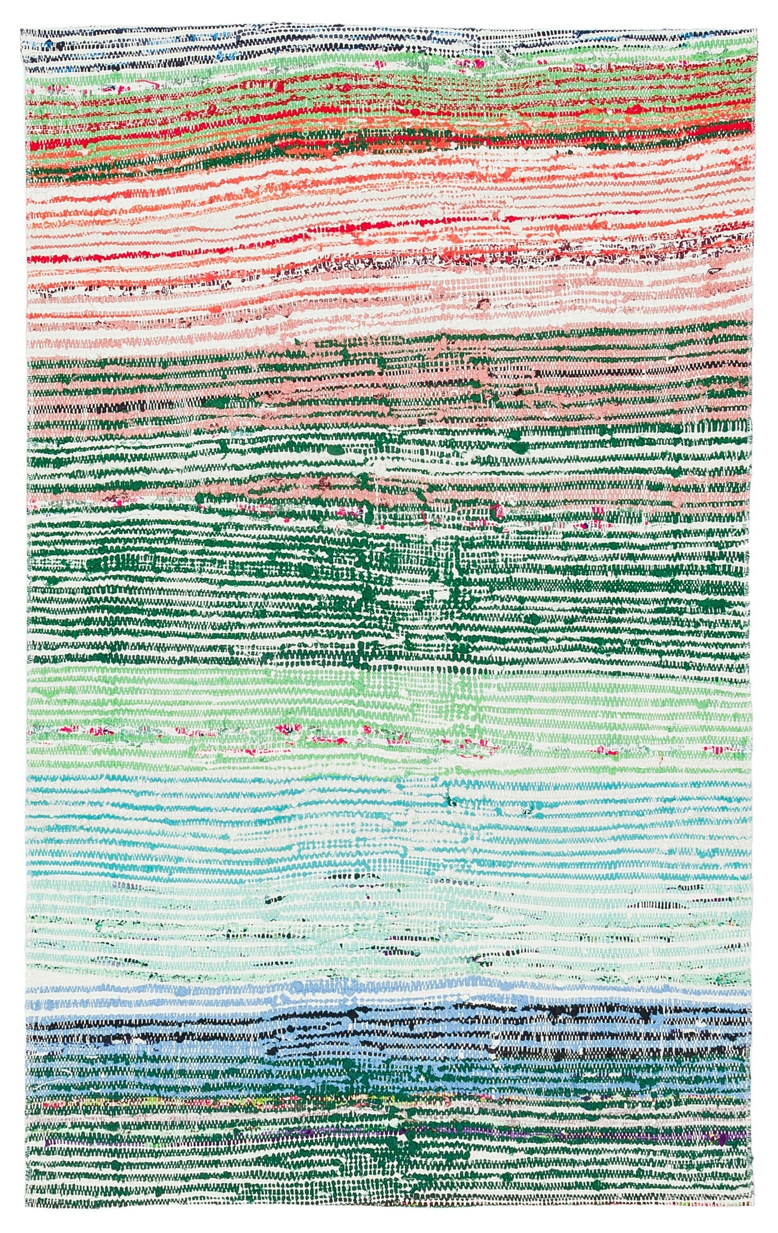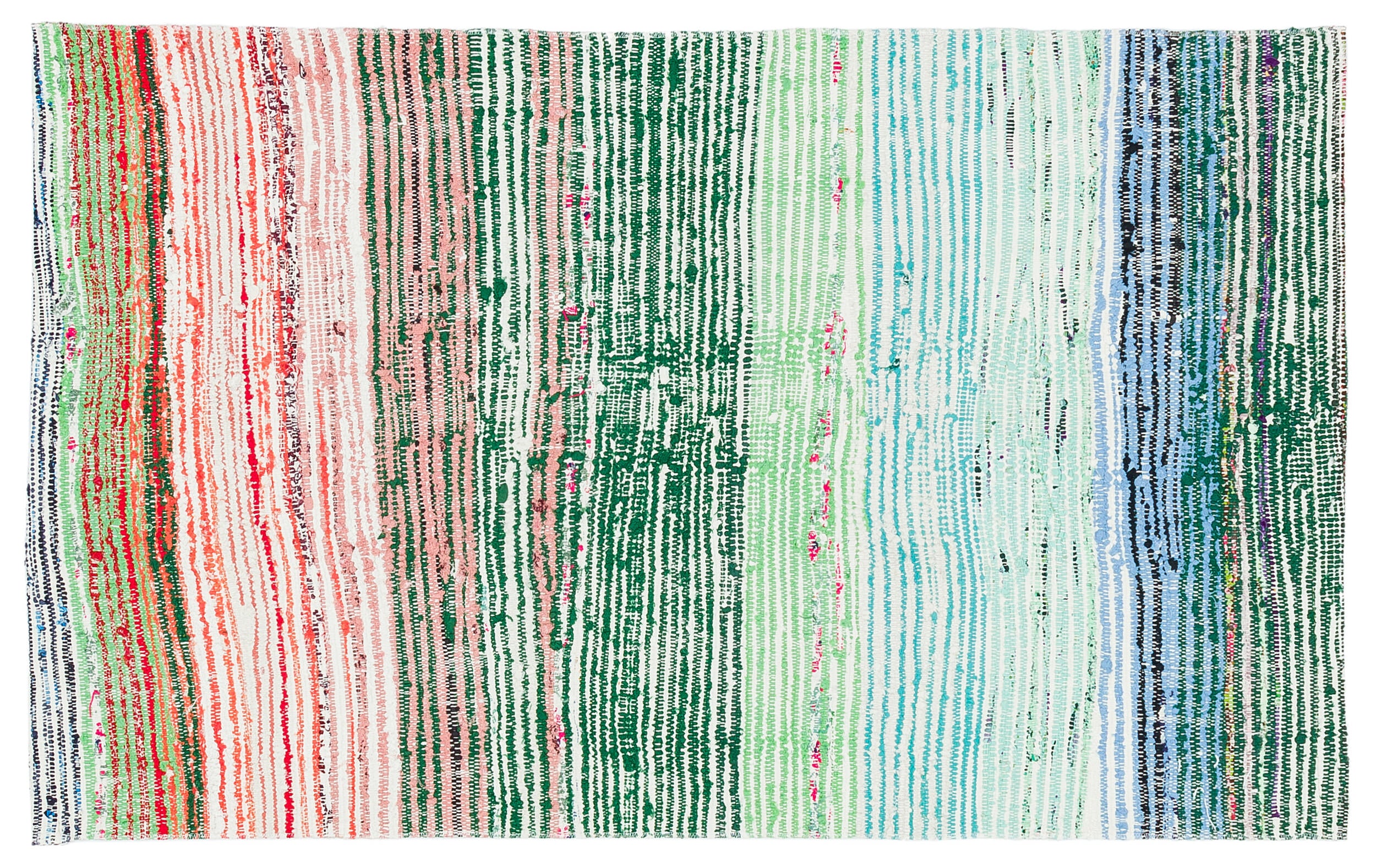 Girit Yeşil Çizgili Yün El Dokuma Halısı 077 x 125